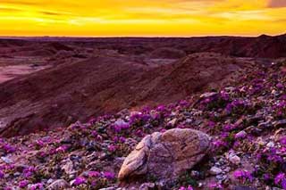 Les actualités médias ont rapporté qu’environ 150 000 personnes ont assisté le mois dernier la ville de Borrego Springs, environ trois mille 500 habitants, pour profiter de la floraison super.  Ce territoire délimité à l’ouest par Anza-Borrego State Park, le plus important en Californie, qui est abrite des centaines d’espèces végétales caractéristiques du désert.