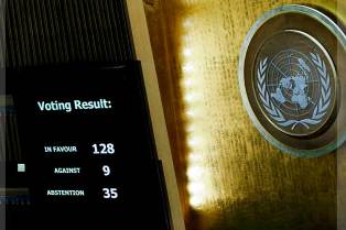 Nations Unies, 21 décembre (Prensa Latina) L´Assemblée Générale de l´ONU a aujourd´hui voté un projet de résolution contre la mesure des États-Unis qui reconnait Jérusalem comme la capitale d´Israël. Ce projet de résolution a reçu le soutien de 128 pays, 9 s´y sont opposés et 35 se sont abstenus.