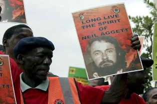 Aggett, qui fut le premier militant anti-apartheid blanc à mourir en prison, a été arrêté au Cap en 1981 avec sa compagne, la Dr Elizabeth Floyd, après avoir participé à une manifestation contre le régime de l’apartheid.