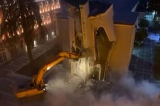 Le rassemblement de citoyens a essayé d’empêcher dès le matin le travail d’une équipe qui commençait à détruire le bâtiment au cœur de cette capitale.