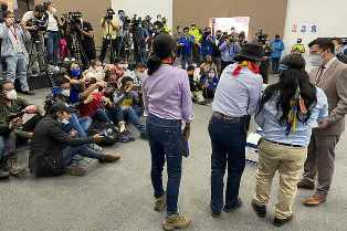 Quito, 24 février (Prensa Latina) Des indigènes mobilisés depuis la ville équatorienne de Loja jusqu’à cette capitale ont accompagné hier le candidat présidentiel Yaku Pérez au Conseil National Electoral (CNE) pour exiger la révision des résultats des élections générales.