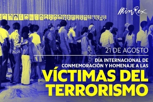 La Havane, 21 août (Prensa Latina) Cuba a entériné aujourd’hui sa condamnation du terrorisme sous toutes ses formes et manifestations à l’occasion de la Journée internationale de commémoration et d’hommage aux victimes de ce fléau.