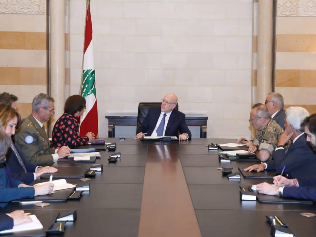 La réunion, à laquelle ont participé le ministre des affaires étrangères Abdullah Bou Habib et le coordinateur du gouvernement avec la Finul, le général de brigade Mounir Shehadeh, a permis de discuter de la situation dans le sud du pays suite au bombardement par Israël, jeudi dernier, de la zone de Kafr Shouba et les violations persistantes de la frontière.