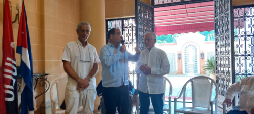 Rencontre à l’Institut de Coopération et d’Amitié avec les Peuples à La Havane, au milieu son directeur Fernando Llort, à droite Roger Grévoul
