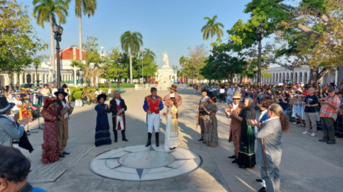 Accueil de la délégation sur la place Parque Marti à Cienfuegos